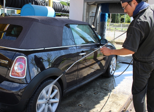 できれば空いているスペース(洗車スペース)などで入れて下さい。