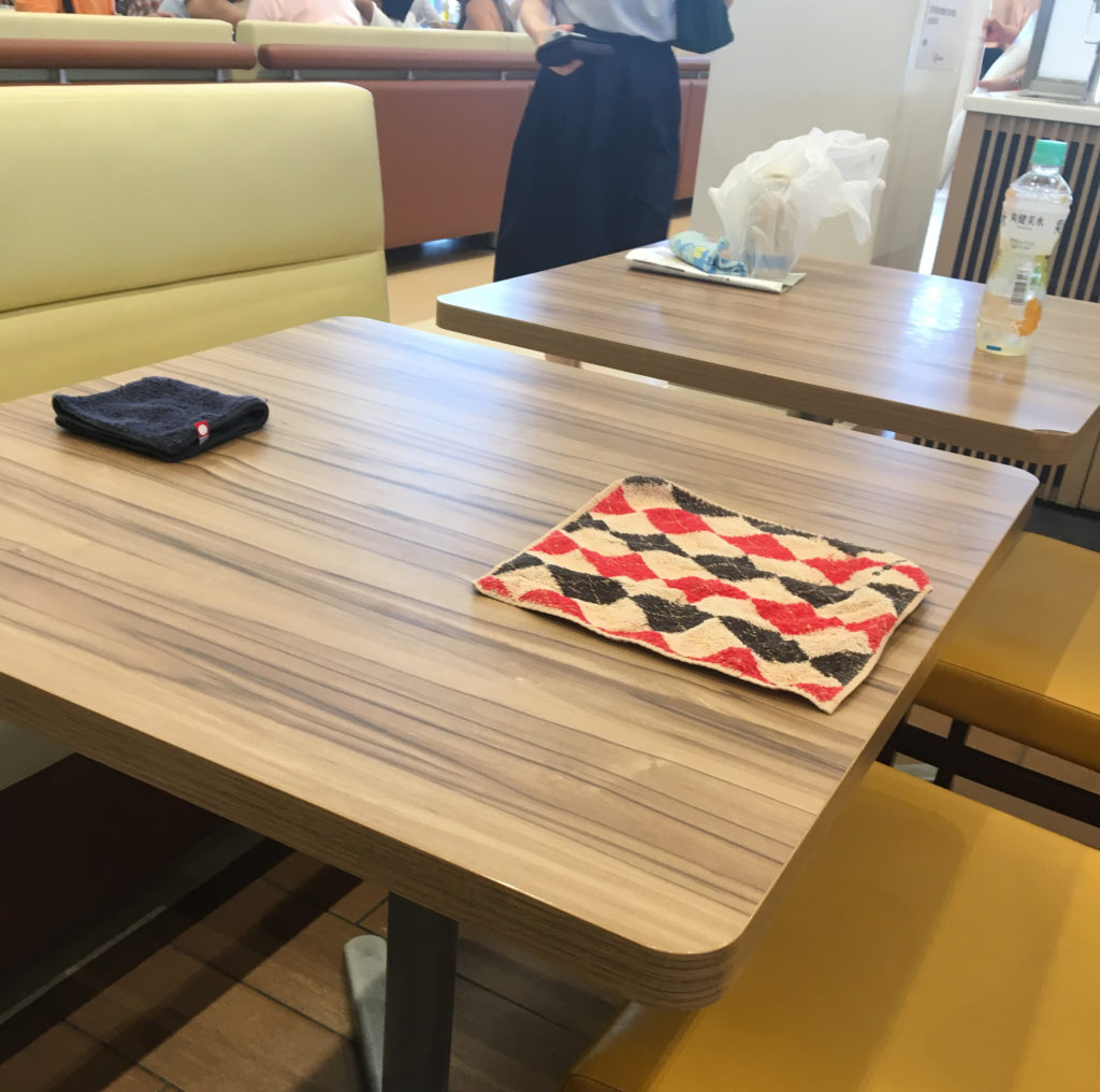 テーブルの上に物を置いて確保する人もたくさんいます。