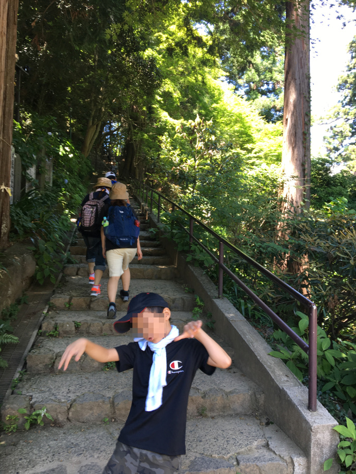 この場所は登り始めて50分くらいした場所ですが、6歳の子供もこのオチャラケぶり。