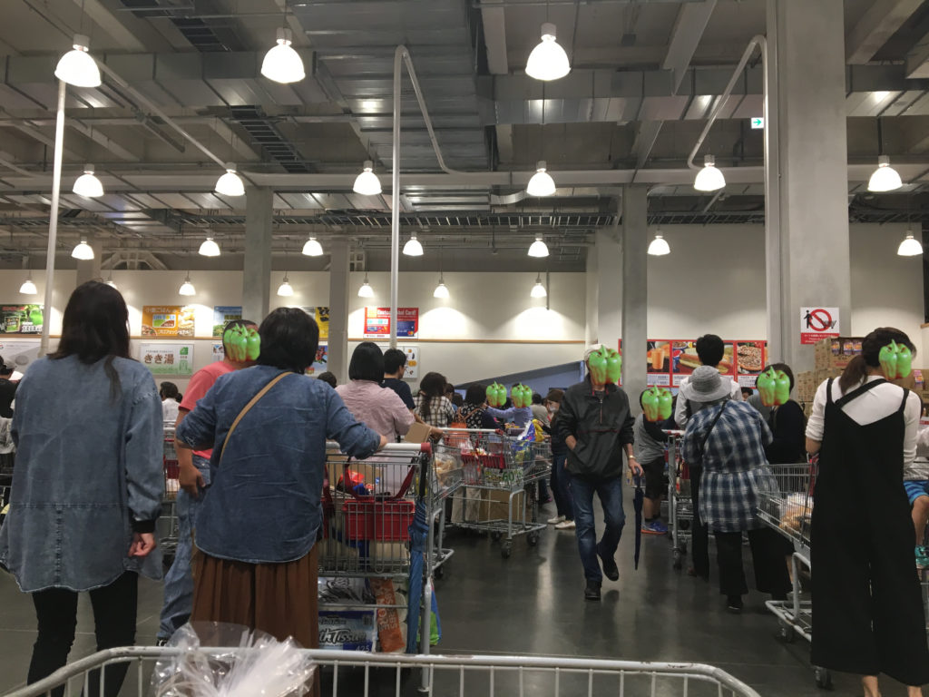しかし、たくさんの商品を大きいカートにいれている人がほとんどですので最低でも10分の待ち時間は必要でしょうね。