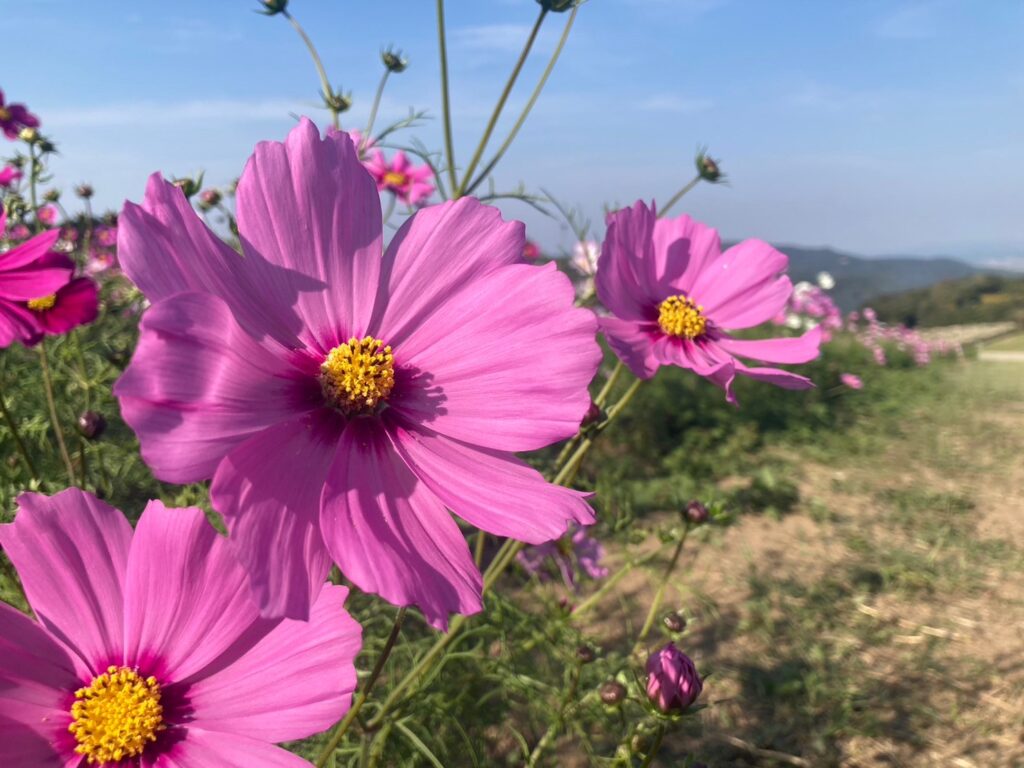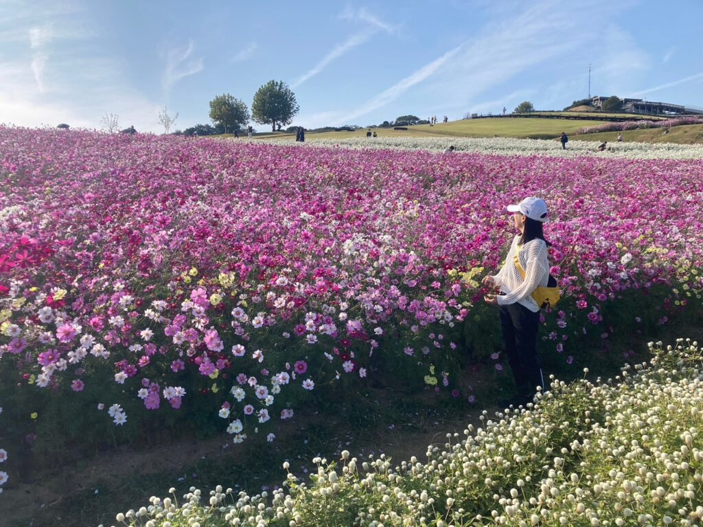 行った時期は、10月後半でした。コスモスやダリアがきれいに咲いて本当にキレイでした。