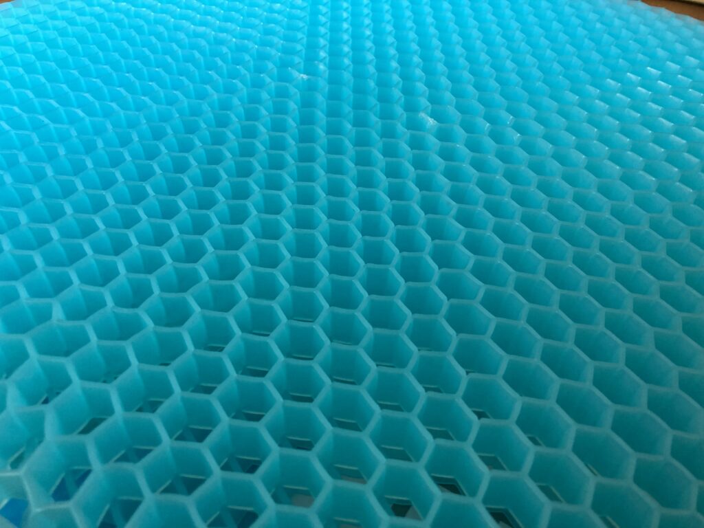 その柔らかい素材とハニカム構造(正六角形)で体圧を分散させます。