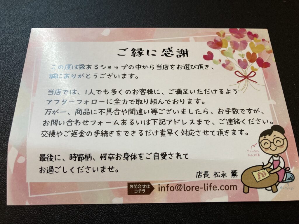 感謝レターも入って嬉しかったです。