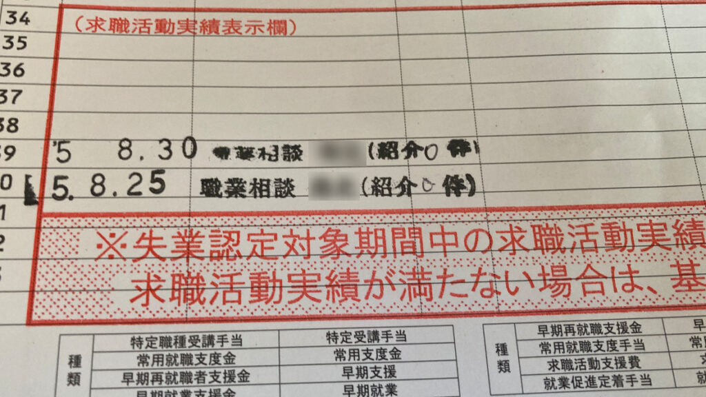 職業相談は実績作りの1つの手段です。相談が終わるとハンコを押して頂けます。このハンコがないと、失業保険がもらえないので注意して下さい↓