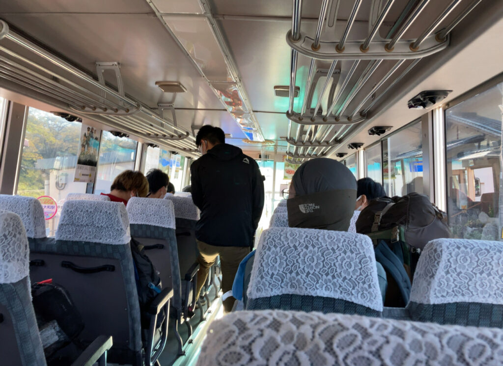 私が乗っていた乗客にも何十人もの登山客がいて小走りでバス停に向かっている人を見かけました。