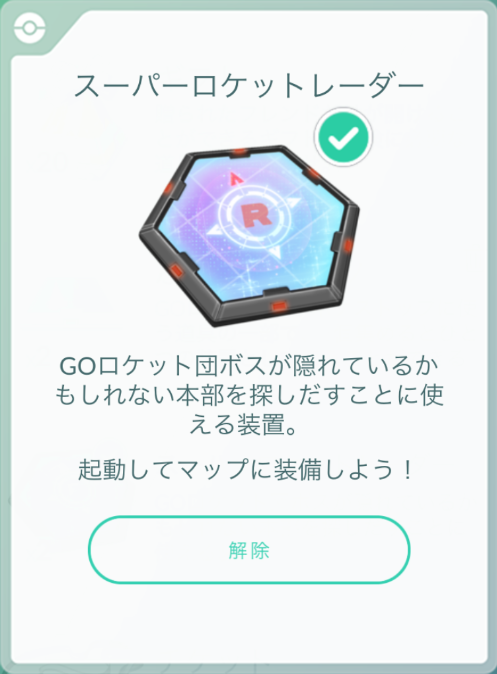 これで、スーパーロケットレーダーをストックする事ができ、マップ右上のアイコンに表示されなくなります。
