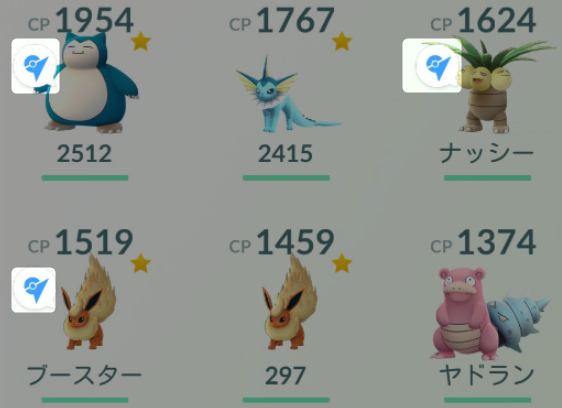 ジムに置いてあるポケモンは、このマークが表示されています↓