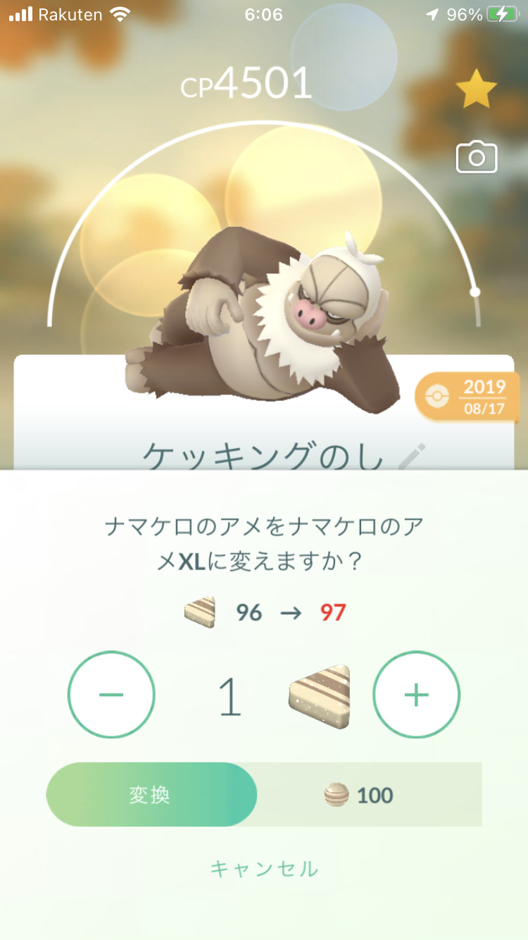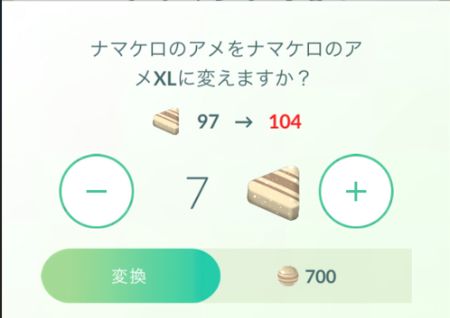 +を押して交換を押せば、アメ100個に対して1個のXLアメが手に入ります↓