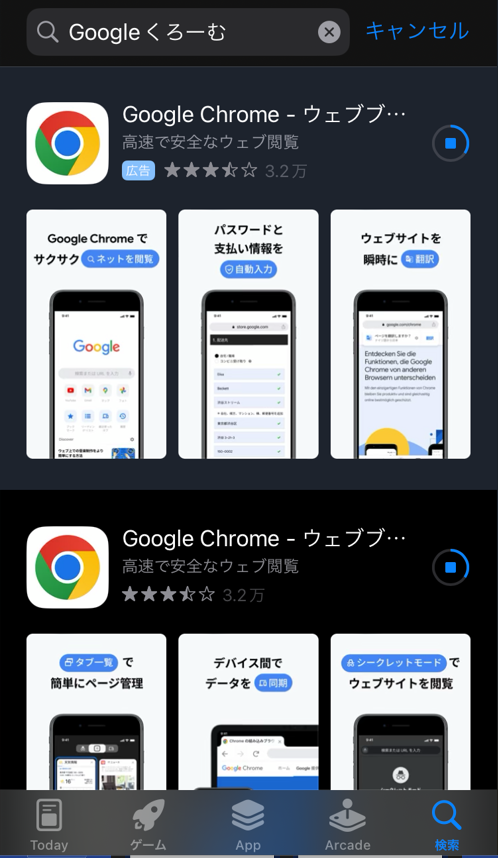 iPhoneをお使いの方は、アップルストアーからグーグルクロームと検索して下さい↓