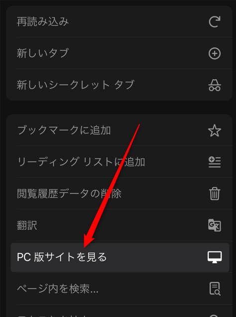次に「PC版サイトを見る」を押して下さい。