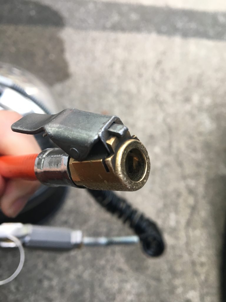空気圧の差込口をタイヤに差し込んで