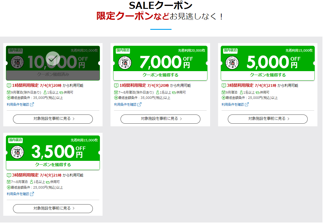 予約期間や、宿泊対象期間はクーポンの種類によって異なります。