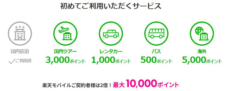 こちらは、エントリーして宿泊するだけでポイントがもらえます(楽天モバイルユーザーは2倍)