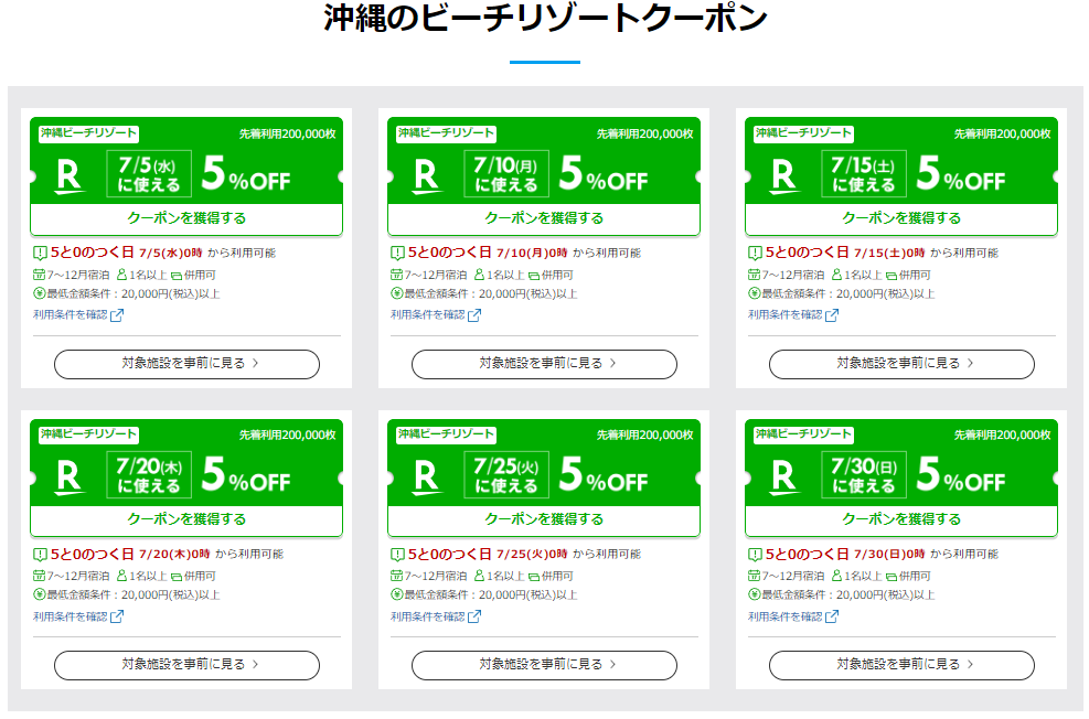 こちらは、沖縄に行かれる方は0と5の付く日に予約されると5%のクーポンが使えます。