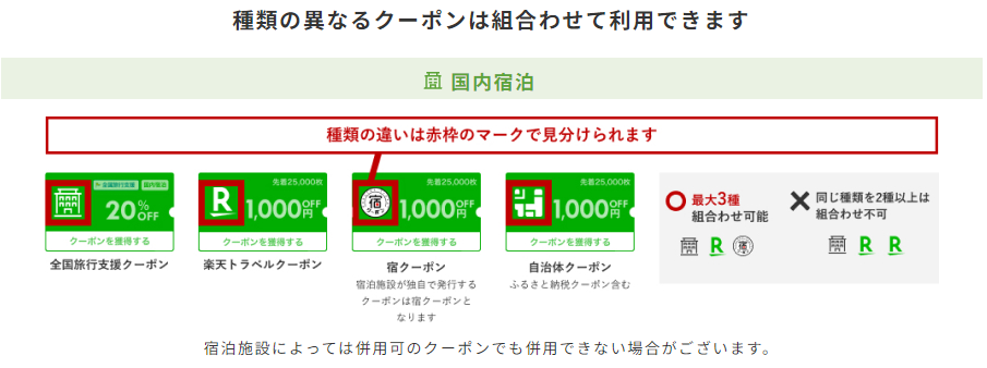 楽天トラベルは、最大で3枚併用ができるようになりました。
