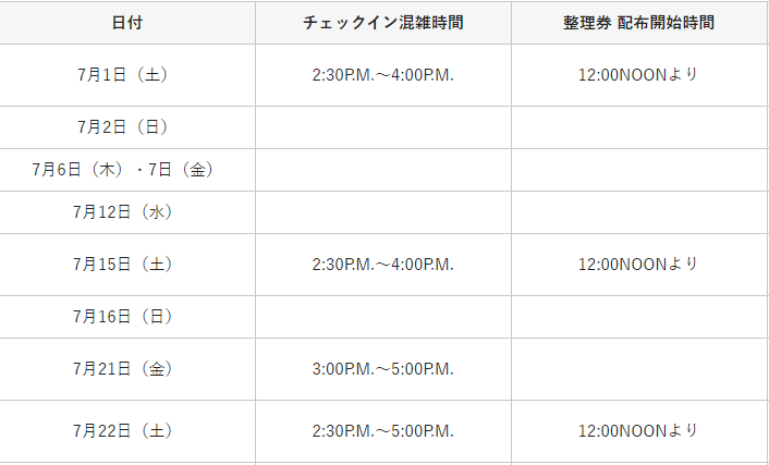 ではチェックインを早めるためにはどうすればいいのか?それは整理券の配布時間を知っておくことです。