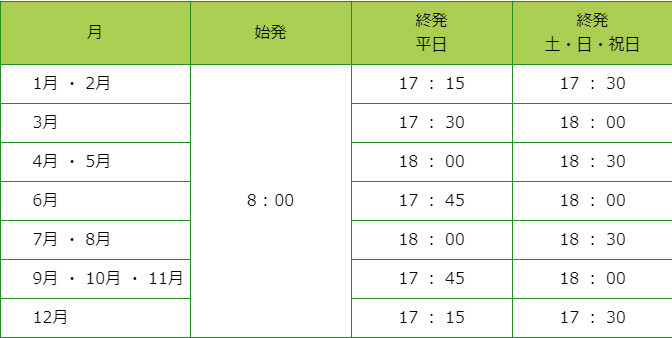 ケーブルカーとリフトの始発は?