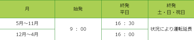 始発は朝の8時~です。料金はケーブルカーもリフトも片道450円です。