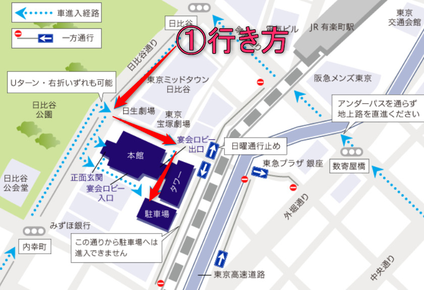 帝国ホテルの駐車場に行くには2通りあります。