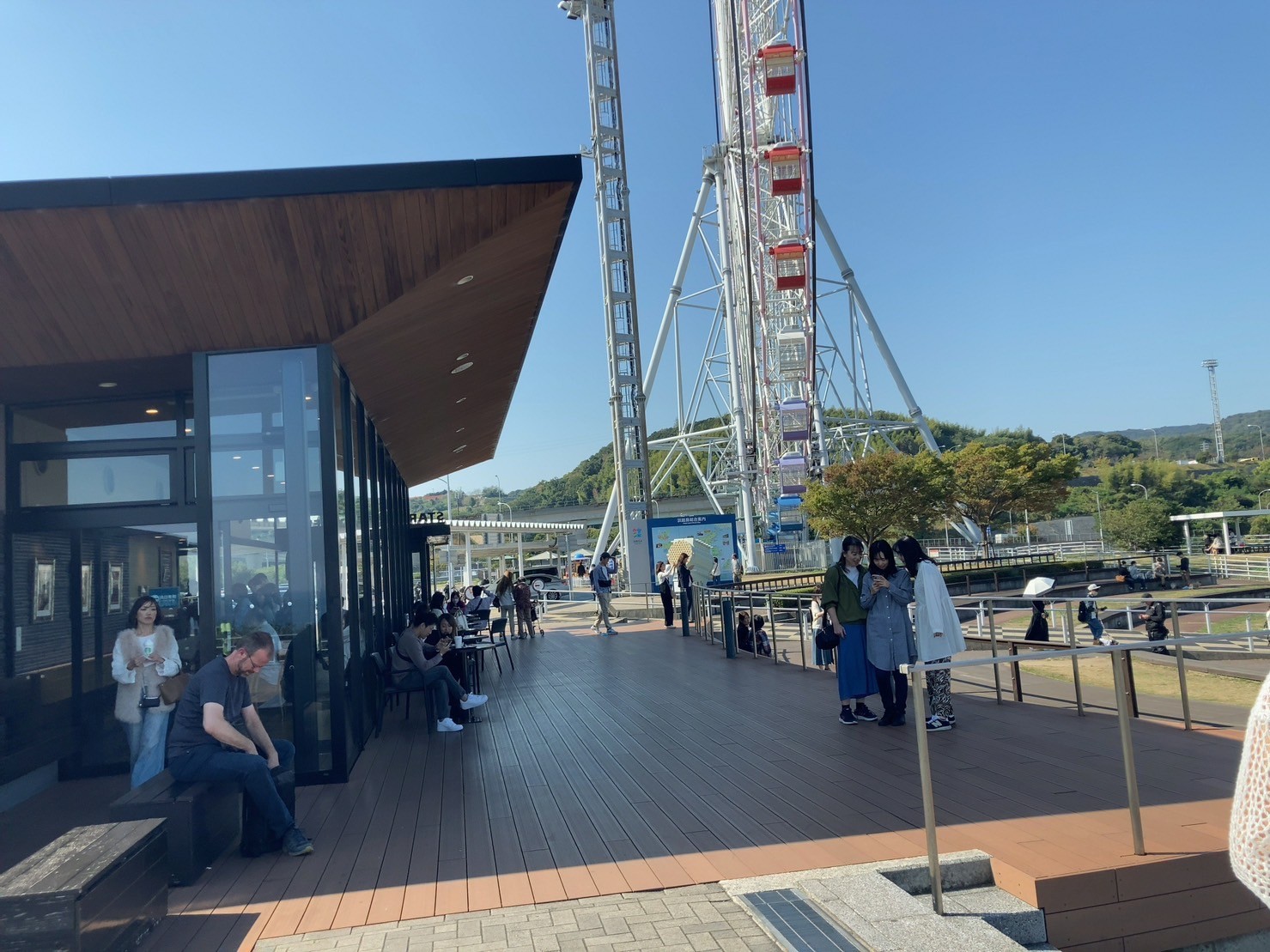 ここのスタバから眺める景色は絶景です。テラス席は平日なのに常に満席でした↓