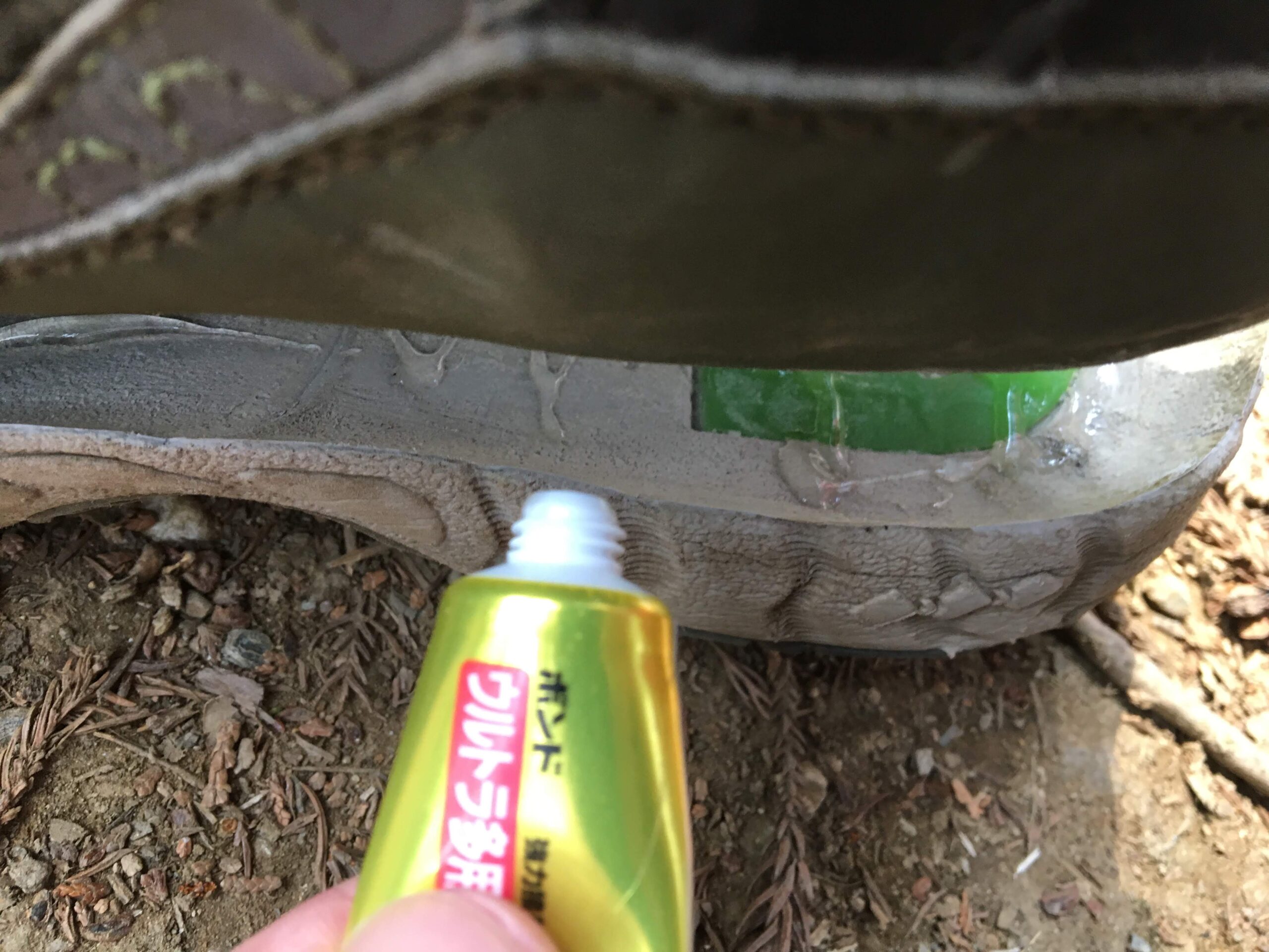 何にでも使える多用途接着剤がありした。登山靴ならこのタイプを使いましょう。