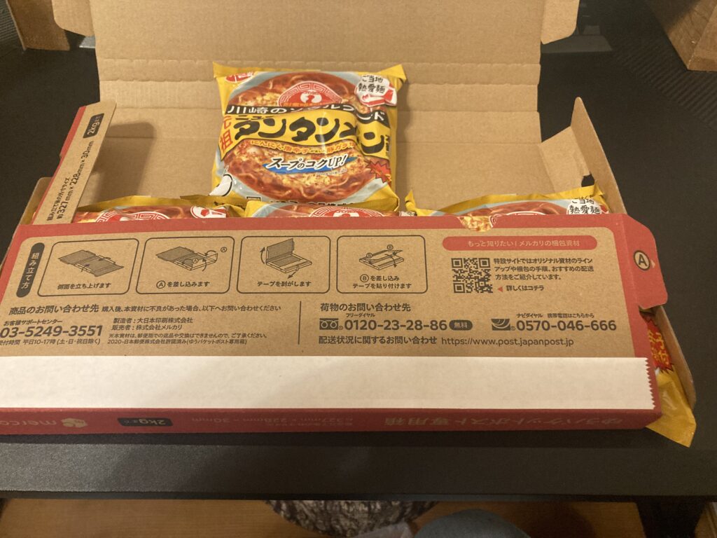 今回筆者が送る商品は、カップ麺です。カップ麺って以外と厚みがあって専用箱に入らない事が多いです↓