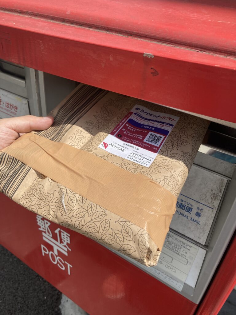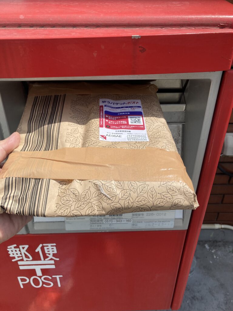 ゆうパケットポストの専用箱を使って少し厚みがでた場合でも問題なく送る事ができます。